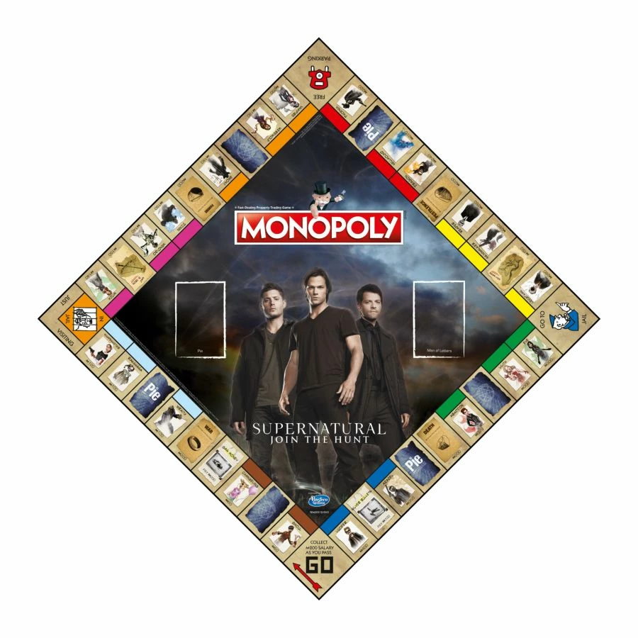 Join Sam and Dean in the epic struggle against evil, and race to end the war between Heaven and Hell in Supernatural Monopoly. As the Apocalypse draws closer, it is up to you to accumulate enough knowledge and power to rid the world of all things unholy, and to rise above your opponents to become the greatest hunter of all. Evil lurks around every corner, and even friends can become potential enemies, so you must use your wits to stay one step ahead of everyone else. The very fate of humanity hangs in the balance!